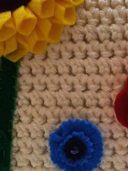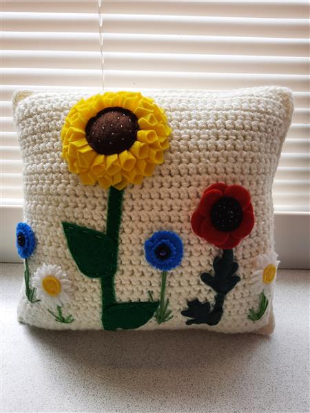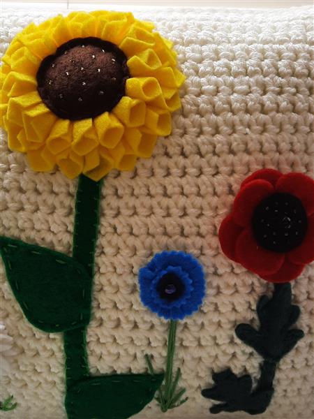 A stunning hand made cushion - crocheted with felt mixed flower decoration