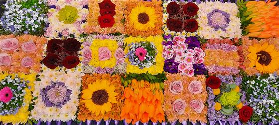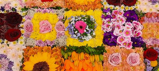 a blanket of flowers with different designed squares to create a blanket effect ( 4ft by 2ft )