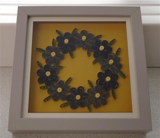 handmade picture made of quilled paper shapes. picture can sit or hang approx 8" square